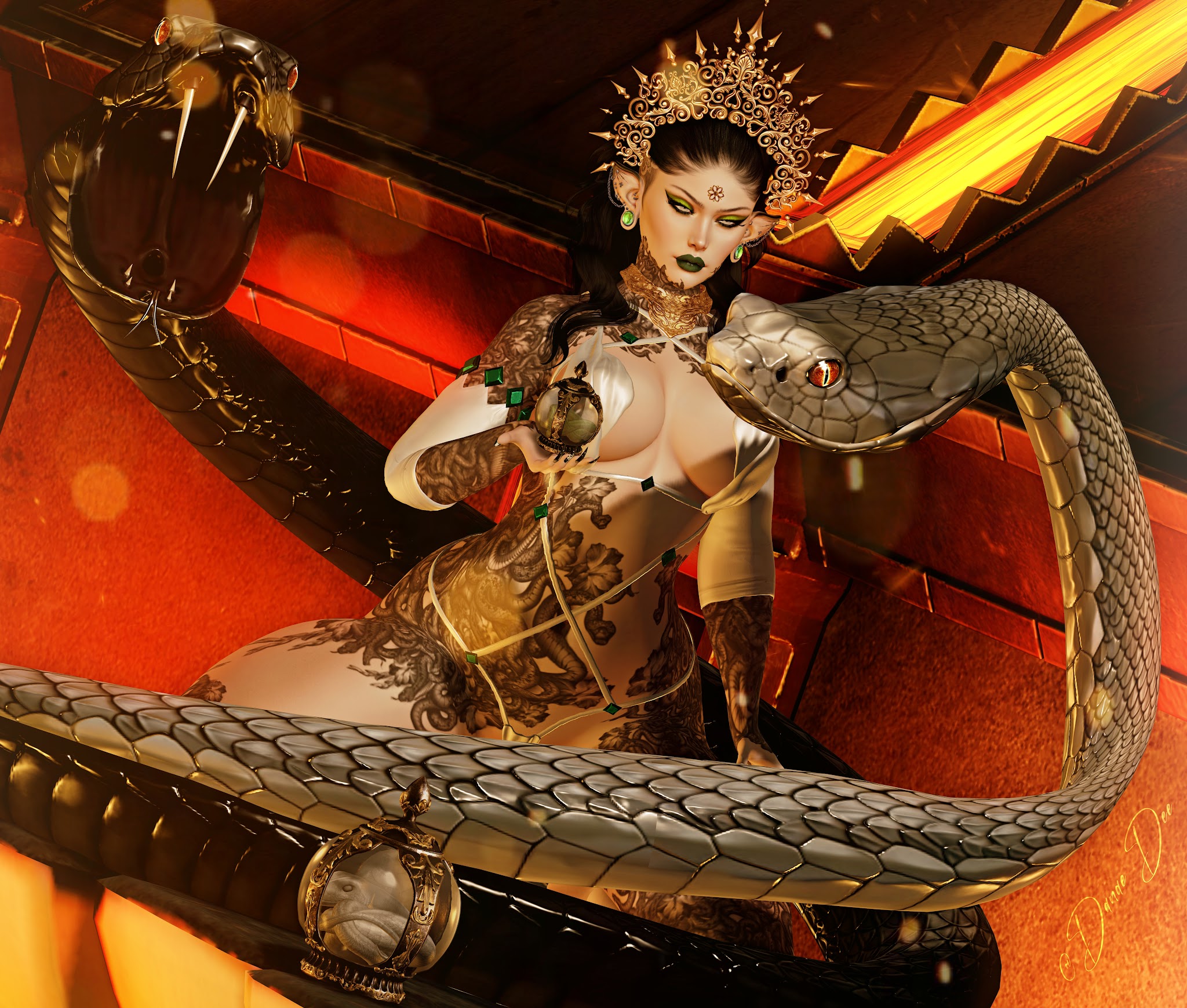 Queen of Snakes Body: ebody Reborn  Head: Lelutka EvoX Avalon  MakeUP: +KnifeParty+ Cameo Eye Make UP +KnifeParty+ Matter Lips…