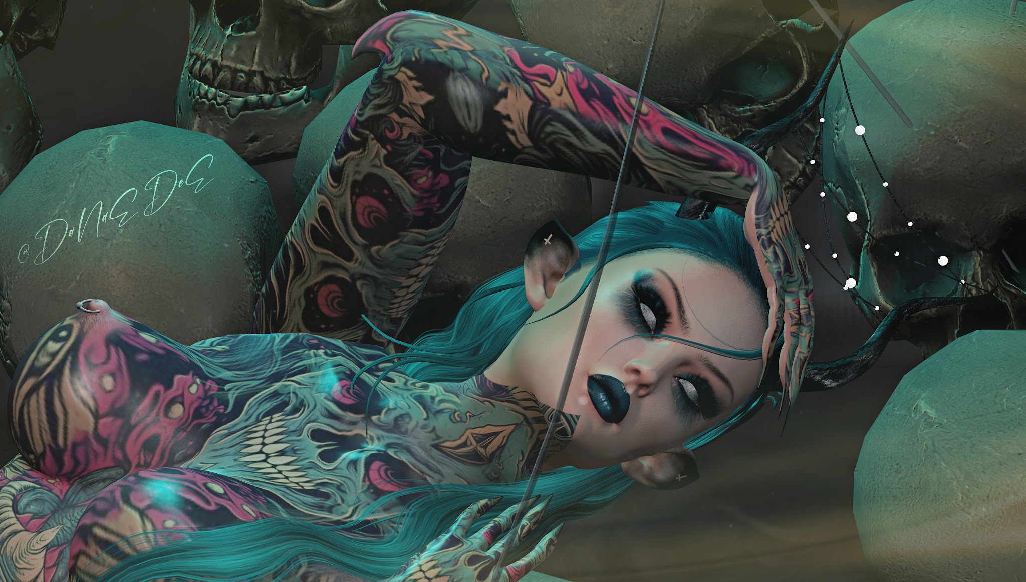 Nymph Body: ebody Reborn  Head: Lelutka EvoX Avalon MakeUP: +KnifeParty+ //Commotion Eye MakeUP +KnifeParty+ Slick Lips  Hair: Nova.Zenith // Vivid  Horns: +Psycho…
