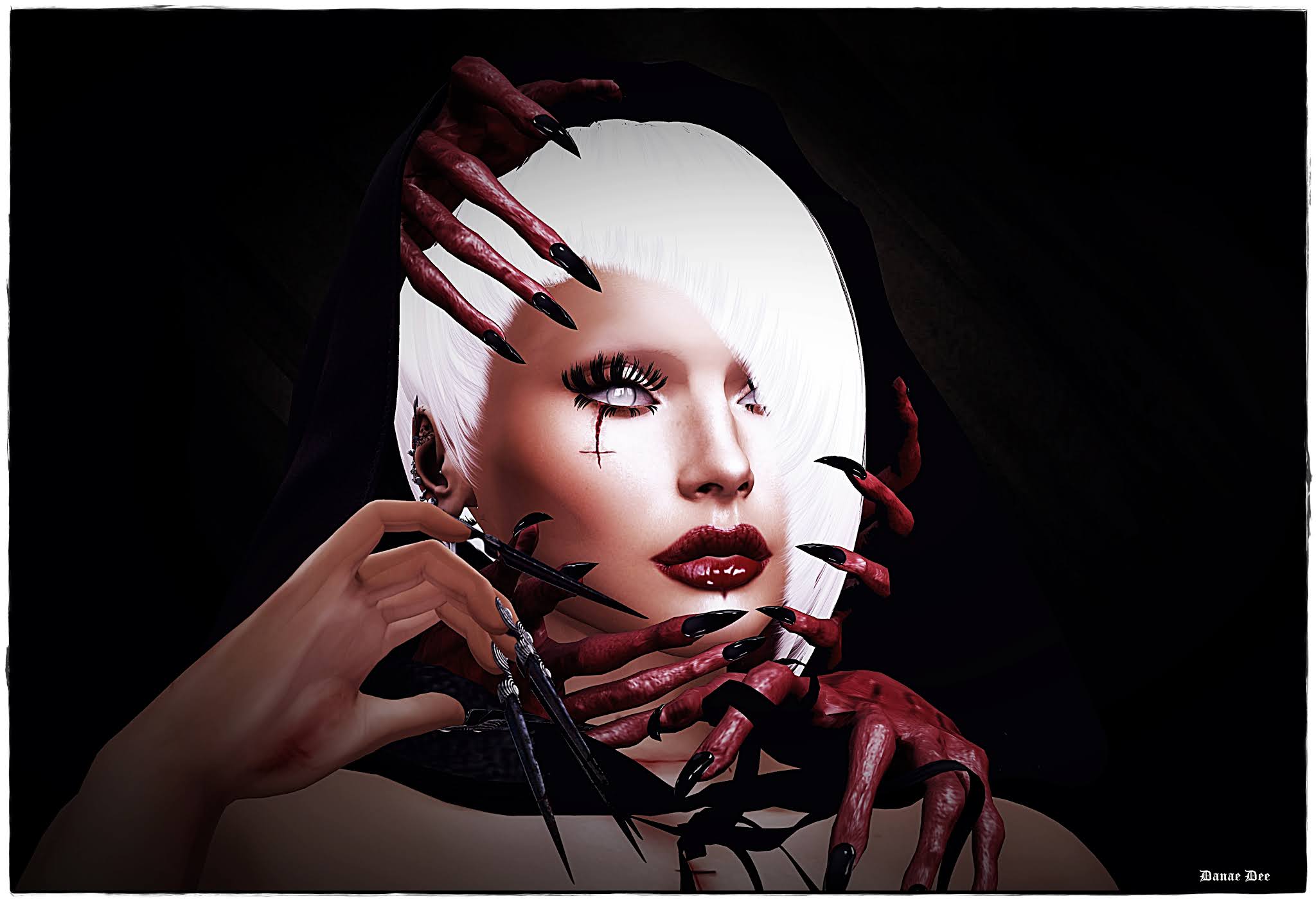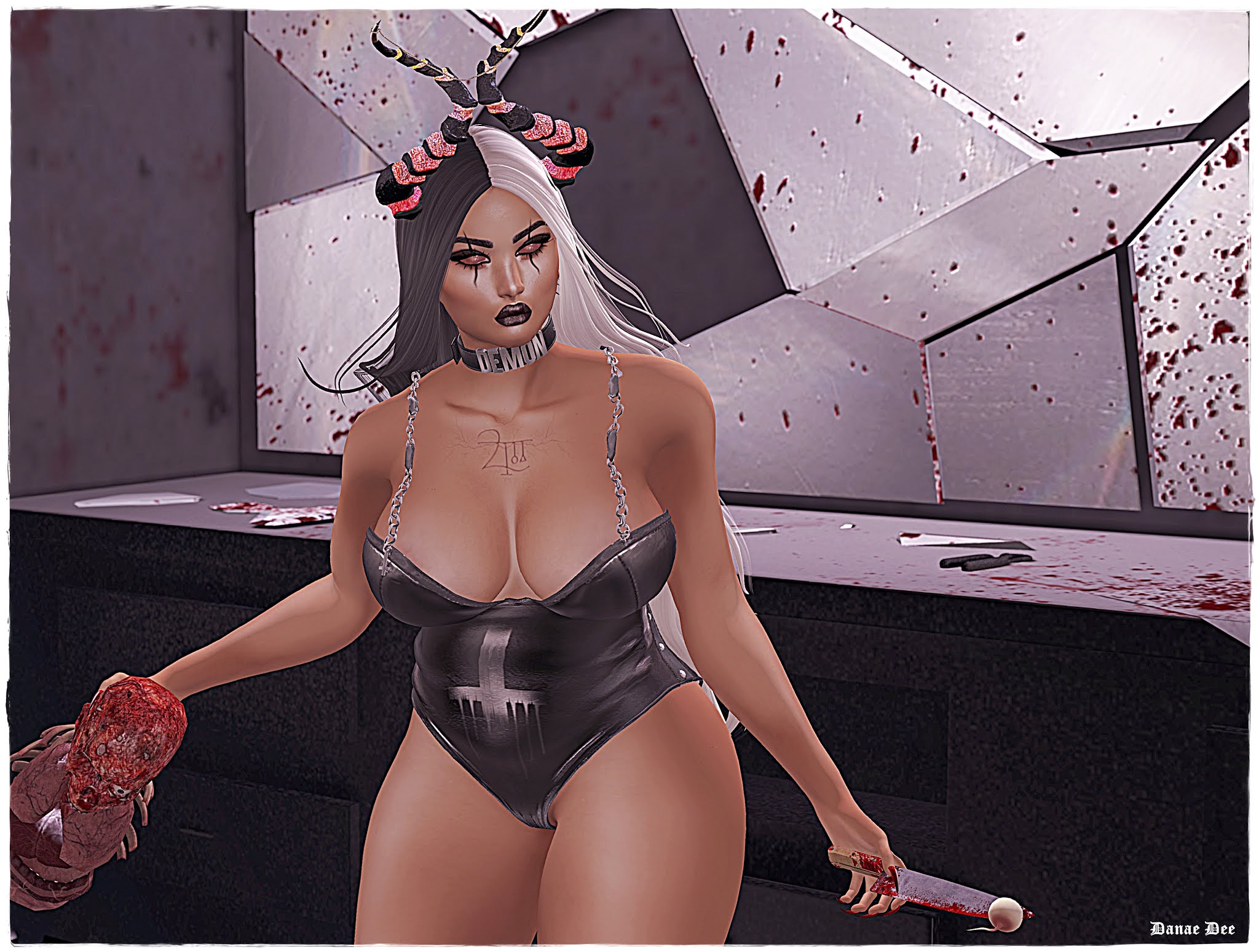 Face Body: Maitreya Head: Genus Strong Make UP: [NoRush] Bloody Lipstick, Immortuos Petrus Laceration Hair: Sintiklia – Mia Lashes: Immortuos