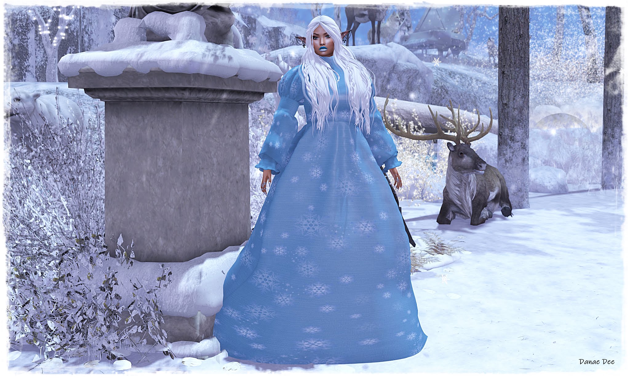Snowwitch Body: Maitreya Lara Head: Genus Project Straigth Make Up: Venge Frozen Lipstick Clothing: Medival World Elf Gown Hair: .Olive