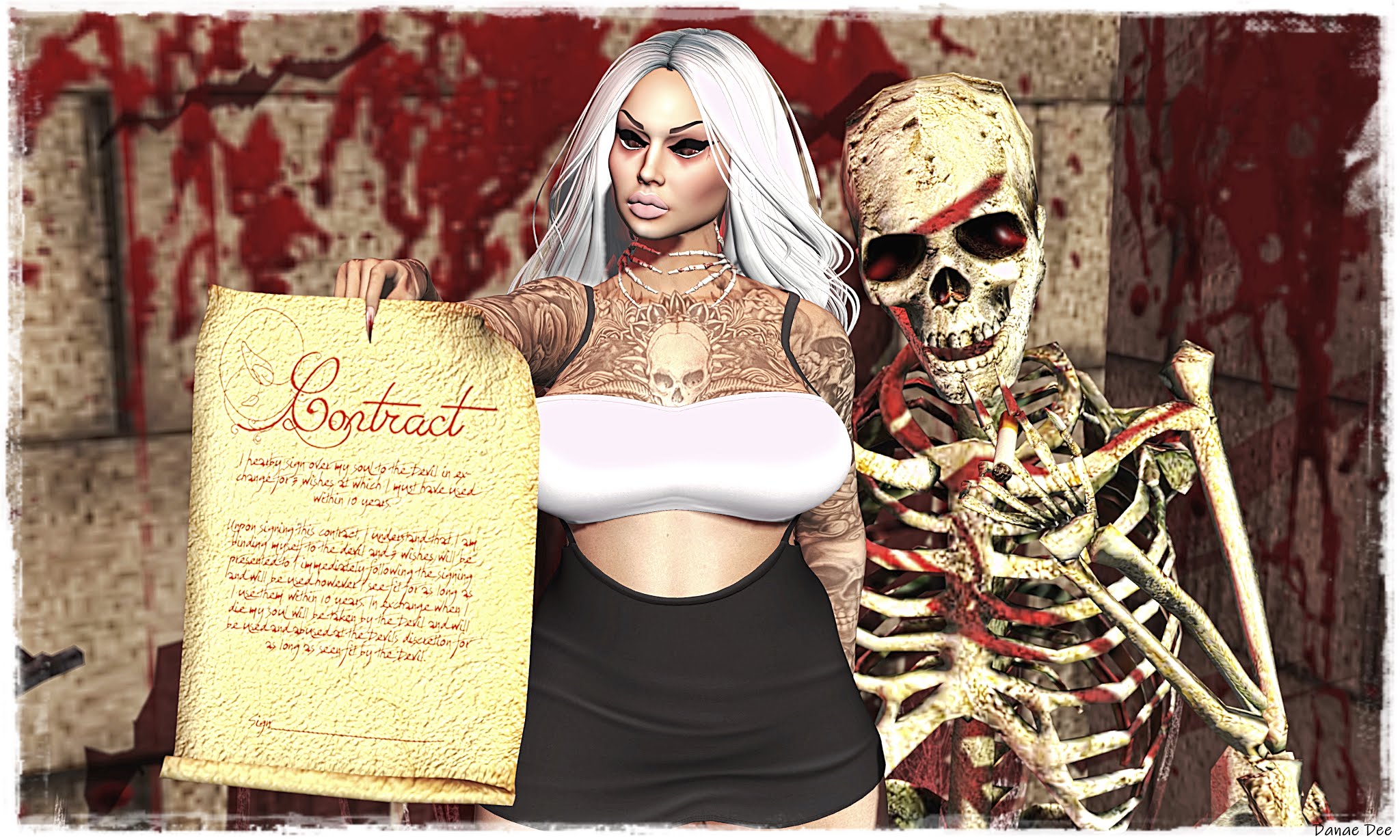 Dangerous Girl Body: Maitreya Lara Head: Catwa Catya Tattoo: OM Tattoo Fennix & Skull Tattoo Accesoire: BouBouki: Dionne Set, **RE**
