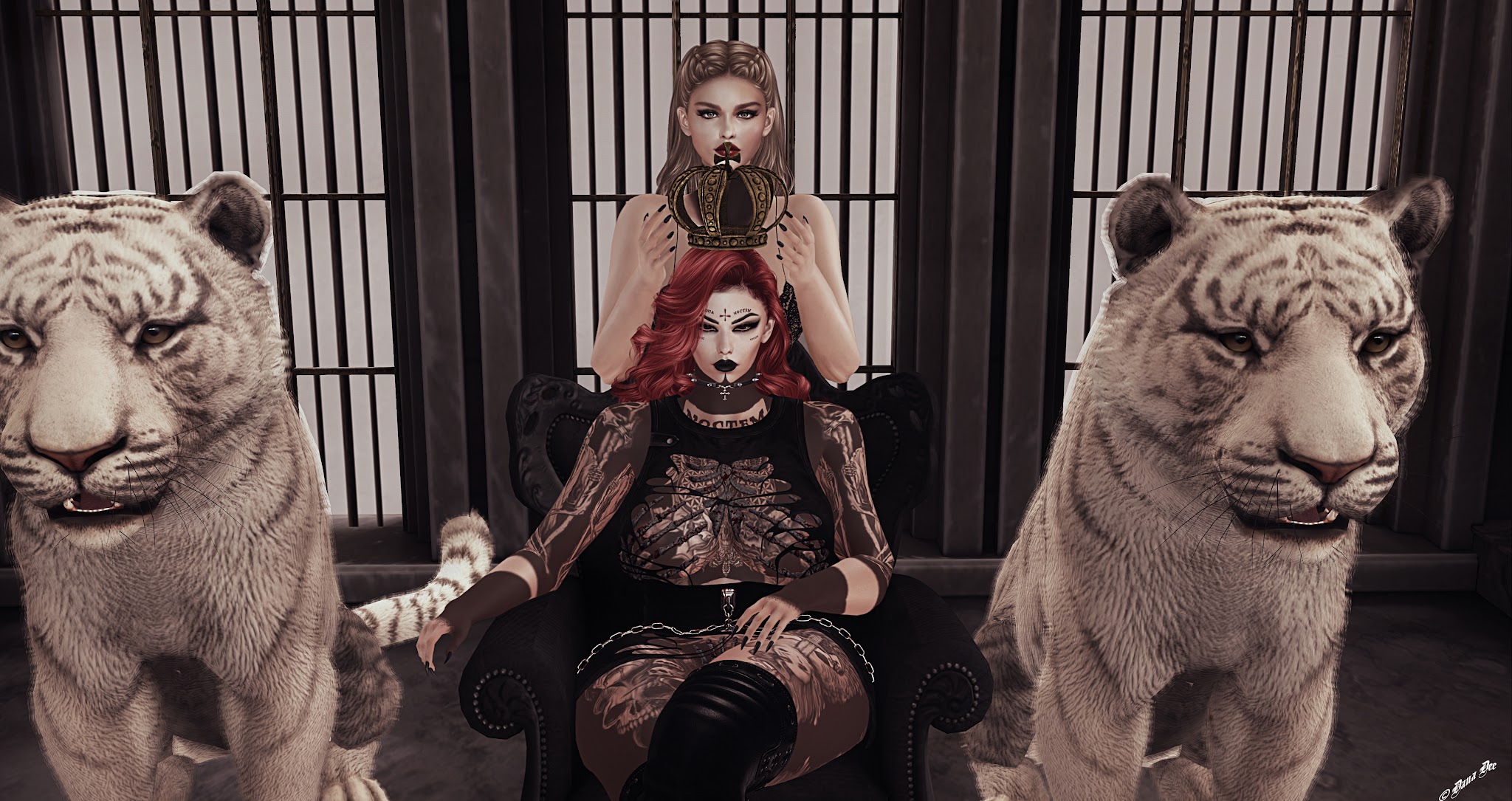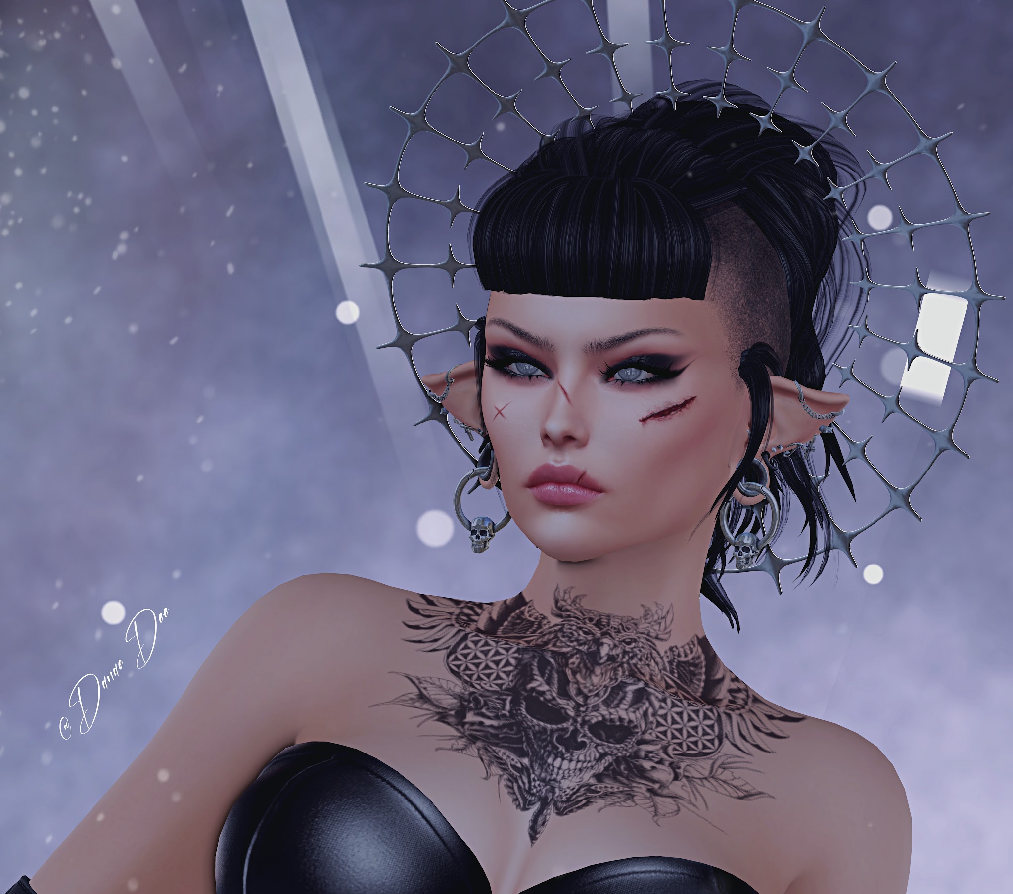 Vakyr  Body: ebody Reborn Head: Lelutka EvoX Avalon MakeUP: [LEPUNK] Xena Eyeshadow FaceScars: [LEPUNK] Jimin Scars ..TENEBRE.. Just a Scratch Hair: adoness - vonks Greyscale Mina…